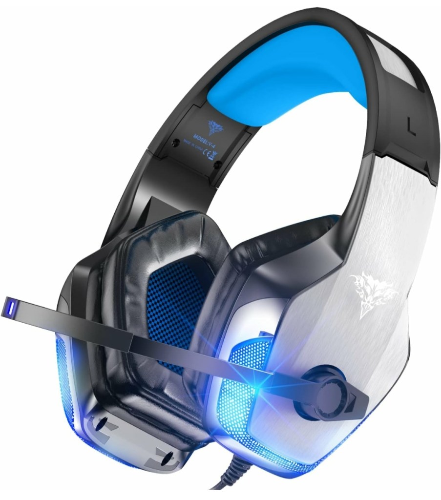 BENGOO V-4 Gaming Headset for Xbox One, PS4, PC, Controller, Noise Cancelling Over Ear Headphones with Mic, LED Light Bass Surround Soft Memory Earmuffs for PS2 Mac Nintendo 64 PS5 Games