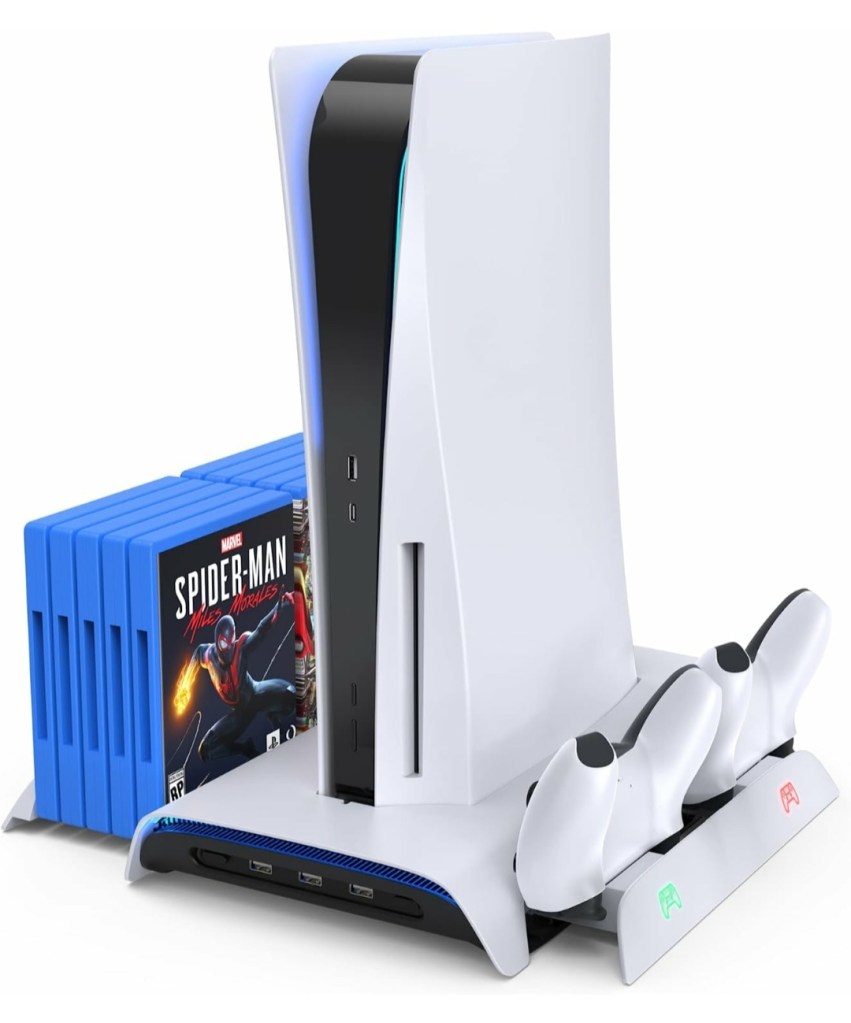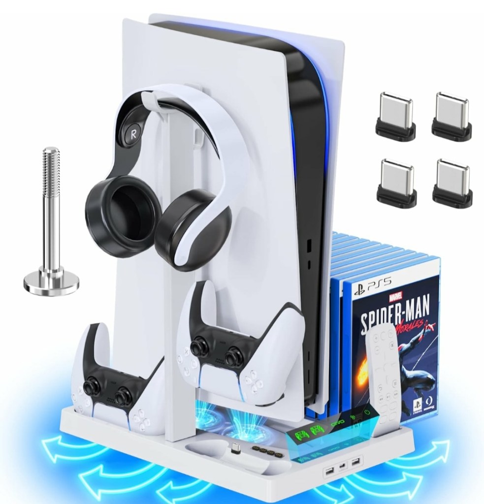 OIVO PS5 Stand with PS5 Controller Charging Station & Dual Suction Cooling Fans, PS5 Cooling Station, PS5 Controller Charger Game Organizer, PS5 Vertical Stand for PS5 Console with Headset Holder