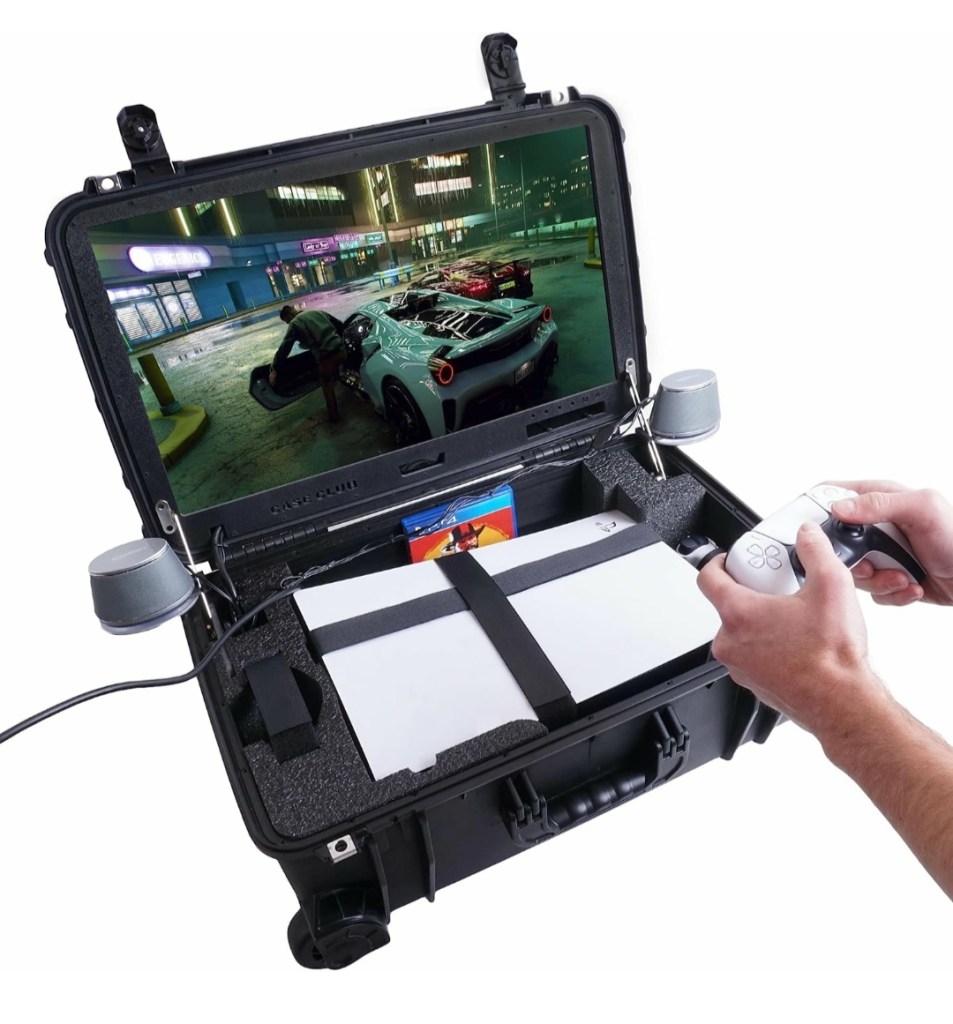 Case Club PlayStation 5 Portable Gaming Station with Built-in 24″ 1080p Monitor, Cooling Fans, & Speakers. Fits PS5 (Disc or Digital), Controllers, & Games, (PS5 & Accessories NOT Included)