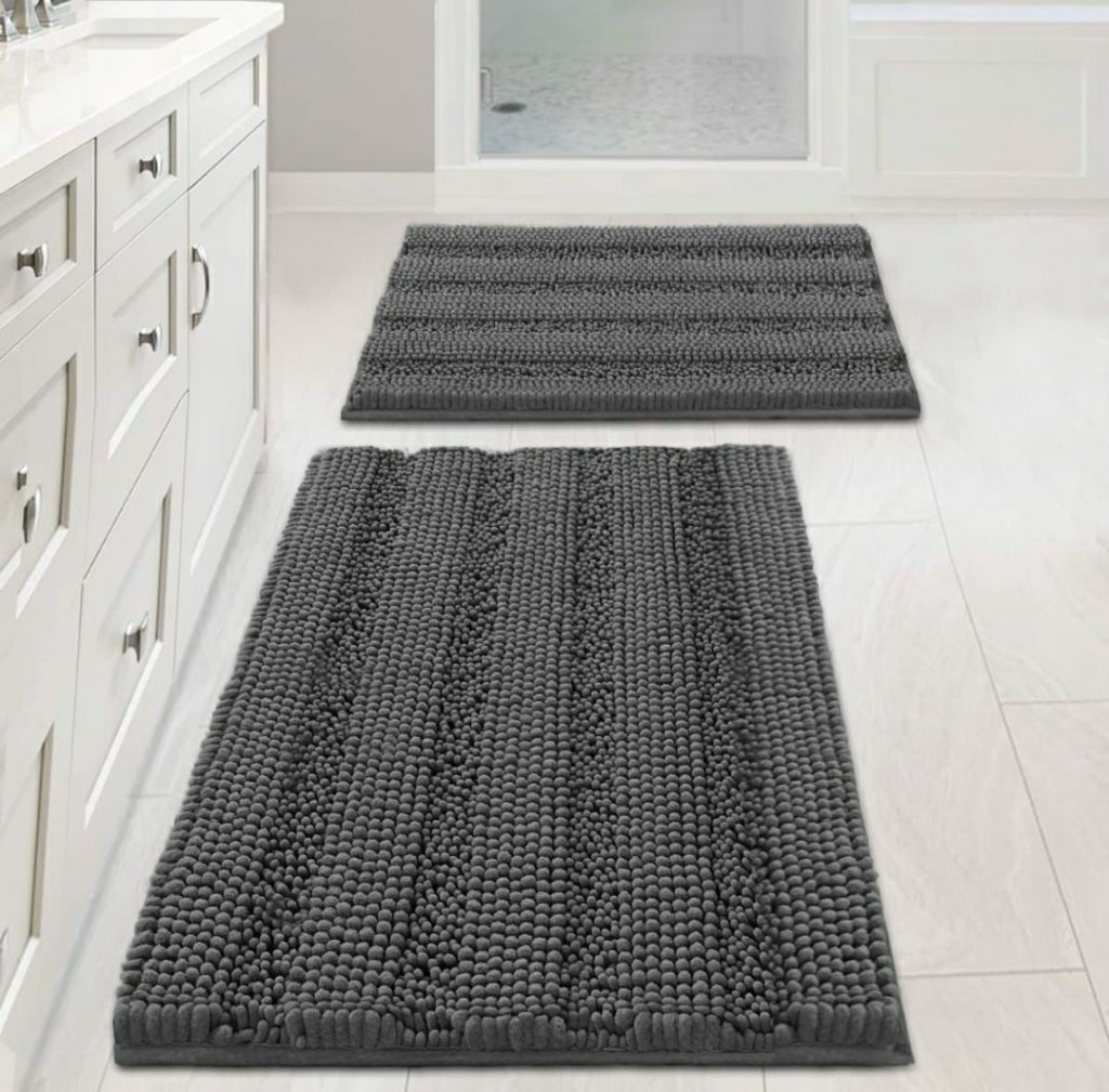 The striped design of these bath mats is also visually appealing and adds a stylish touch to any bathroom or living space. The grey color of these rugs is neutral and versatile, making them a great addition to any decor style.